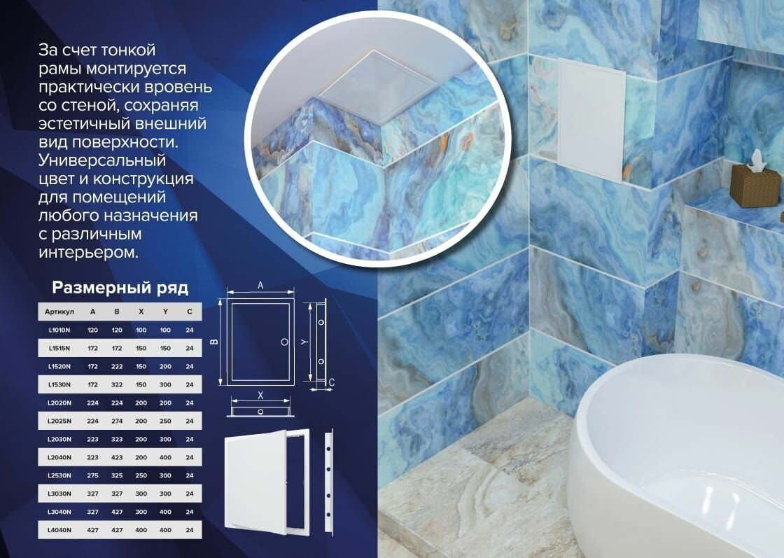 Скрытый ревизионный люк 50х100 (ШхВ) под плитку «Евроформат» Практика, нажимной, распашной