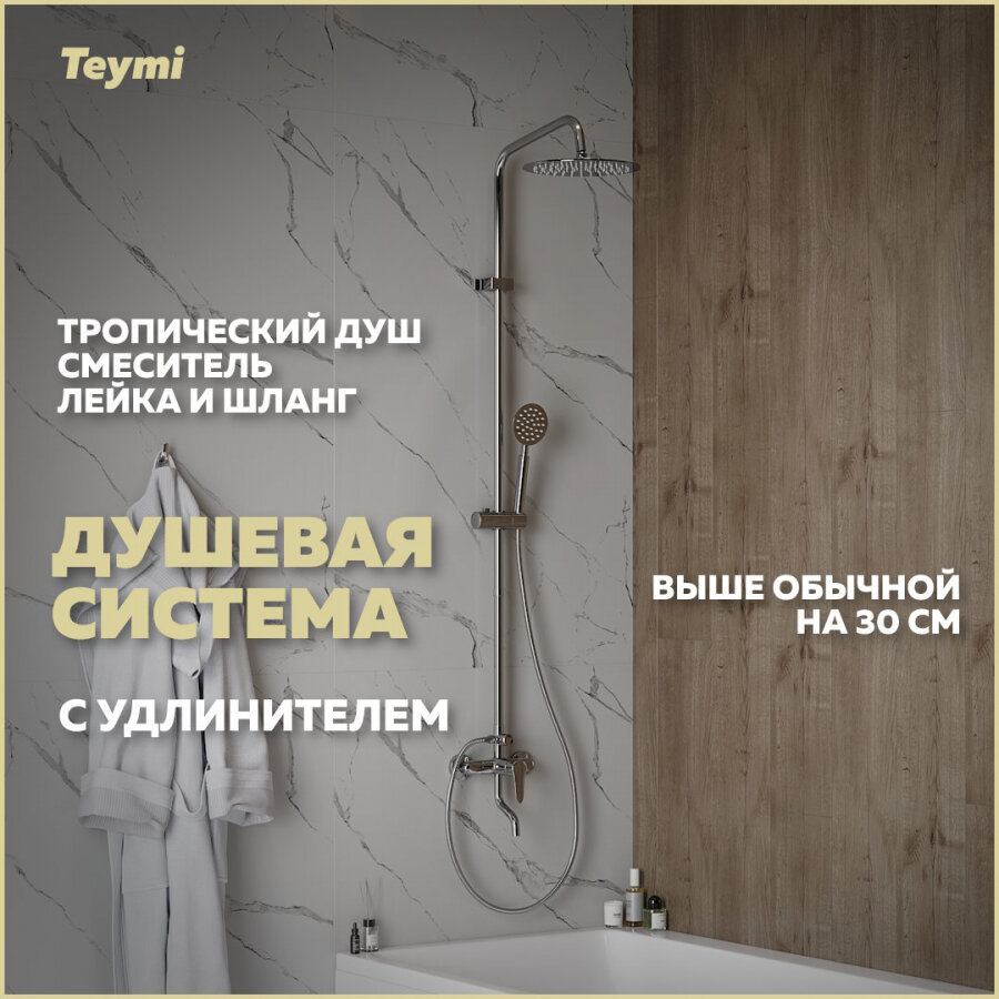 Комплект Teymi 2 в 1: Душевая система Iva хром + удлинитель 30 см из нержавеющей стали F10114 информация: