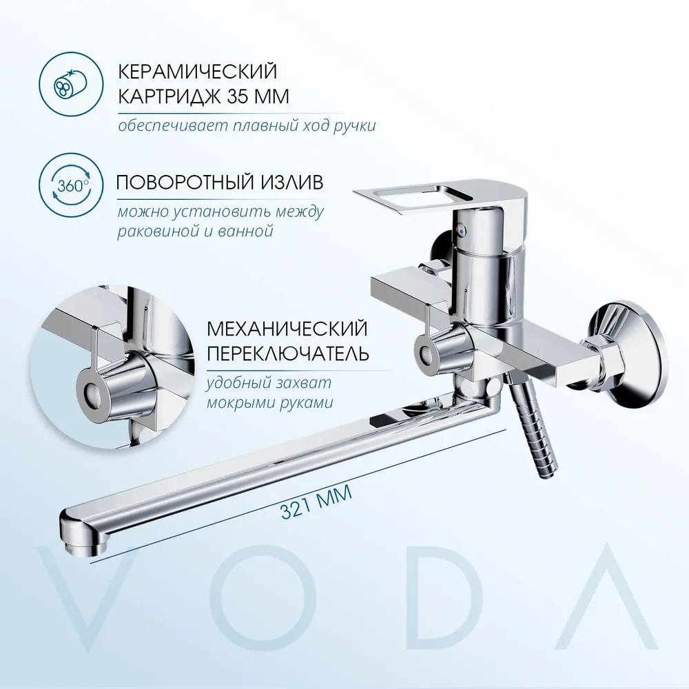 Смеситель для ванны с длинным изливом 324 мм с аксессуарами для душа LVL31 информация:
