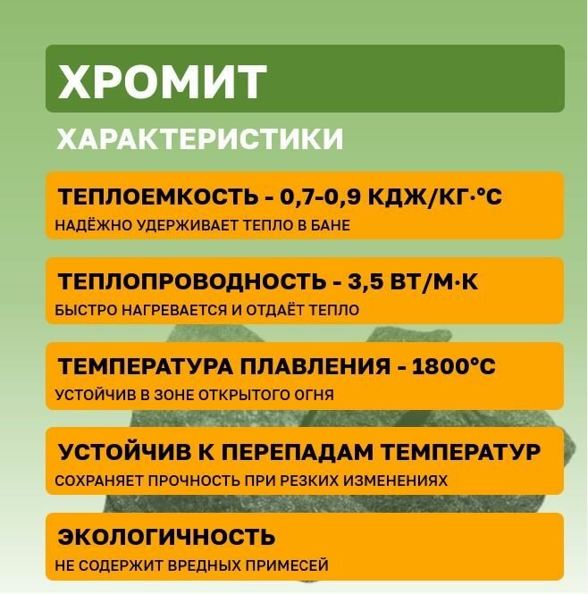 Хромит шлифованный ЖадеБест крупная фракция 11-16 см для бани и сауны 10 кг информация: