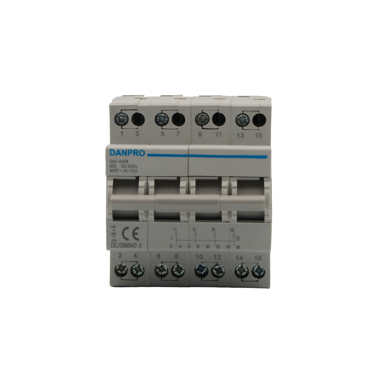 Трехпозиционный переключатель DANPRO на DIN рейку 40А, 4 полюса. Модульный, перекидной, реверсивный рубильник информация: