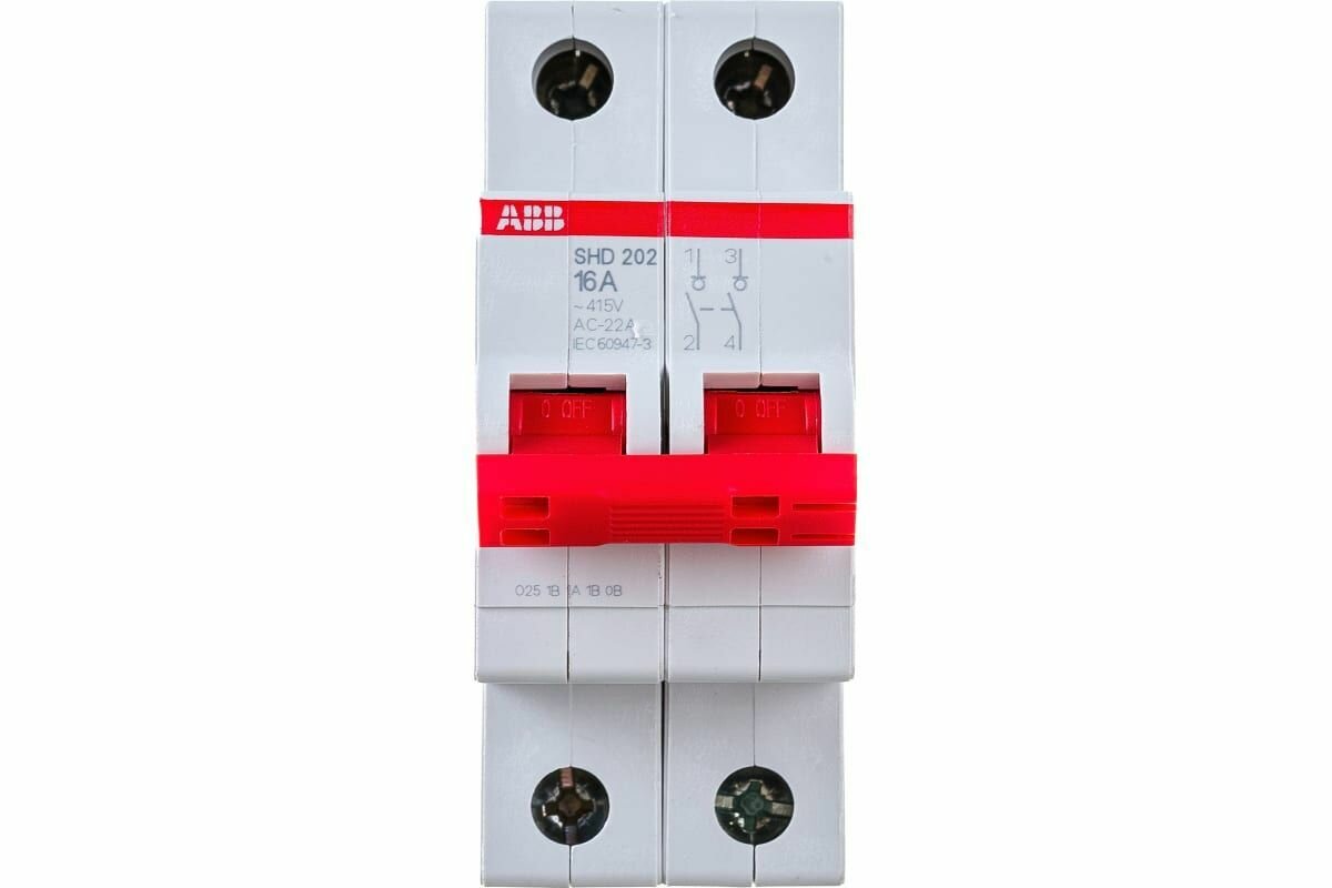 SHD202/16 Рубильник 2-полюсный модульный 16А (красный рычаг) ABB, 2CDD272111R0016 информация: