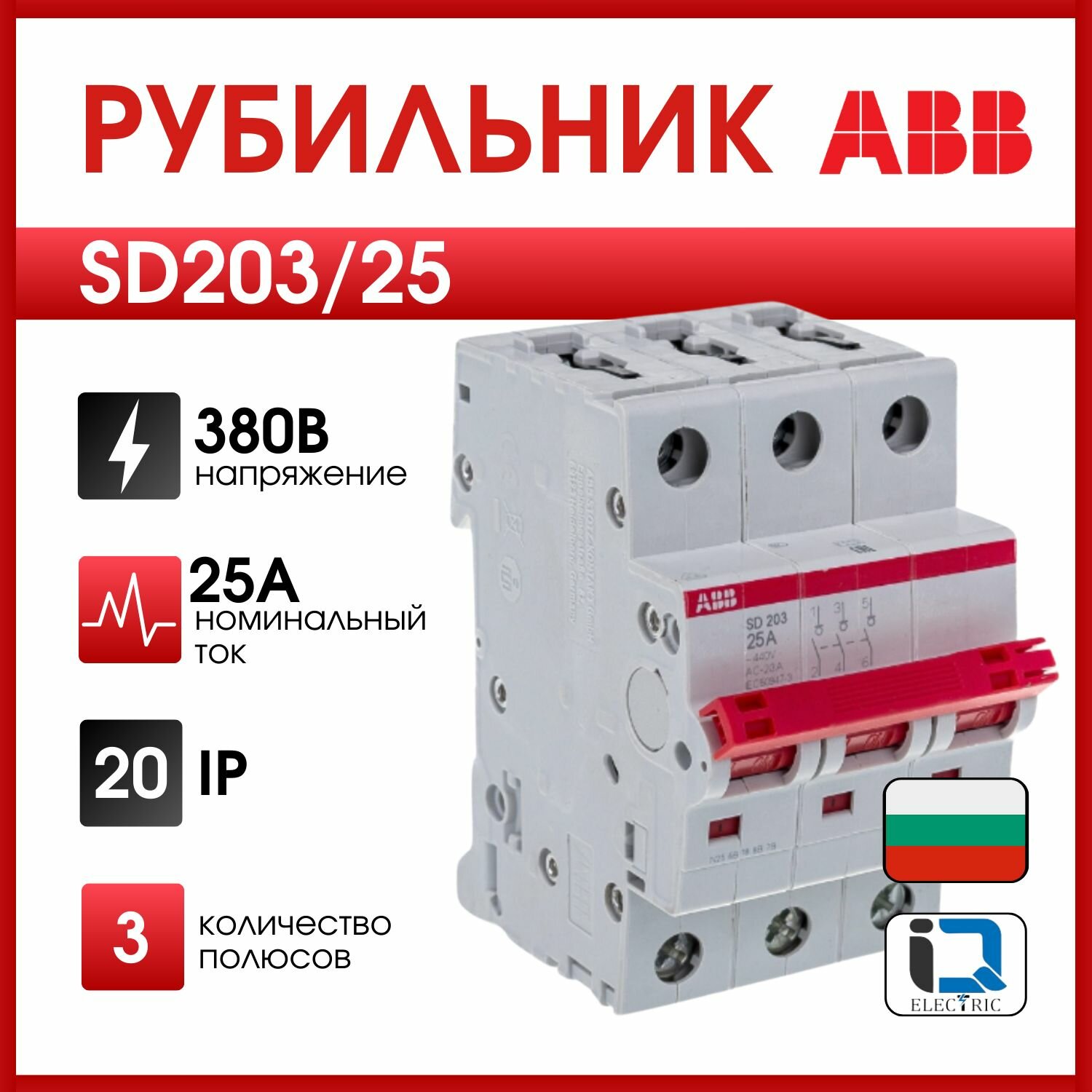 10 цен на Рубильник 3п SD203 25A рычаг красный | код. 2CDD283101R0025 | ABB ( 1шт. )