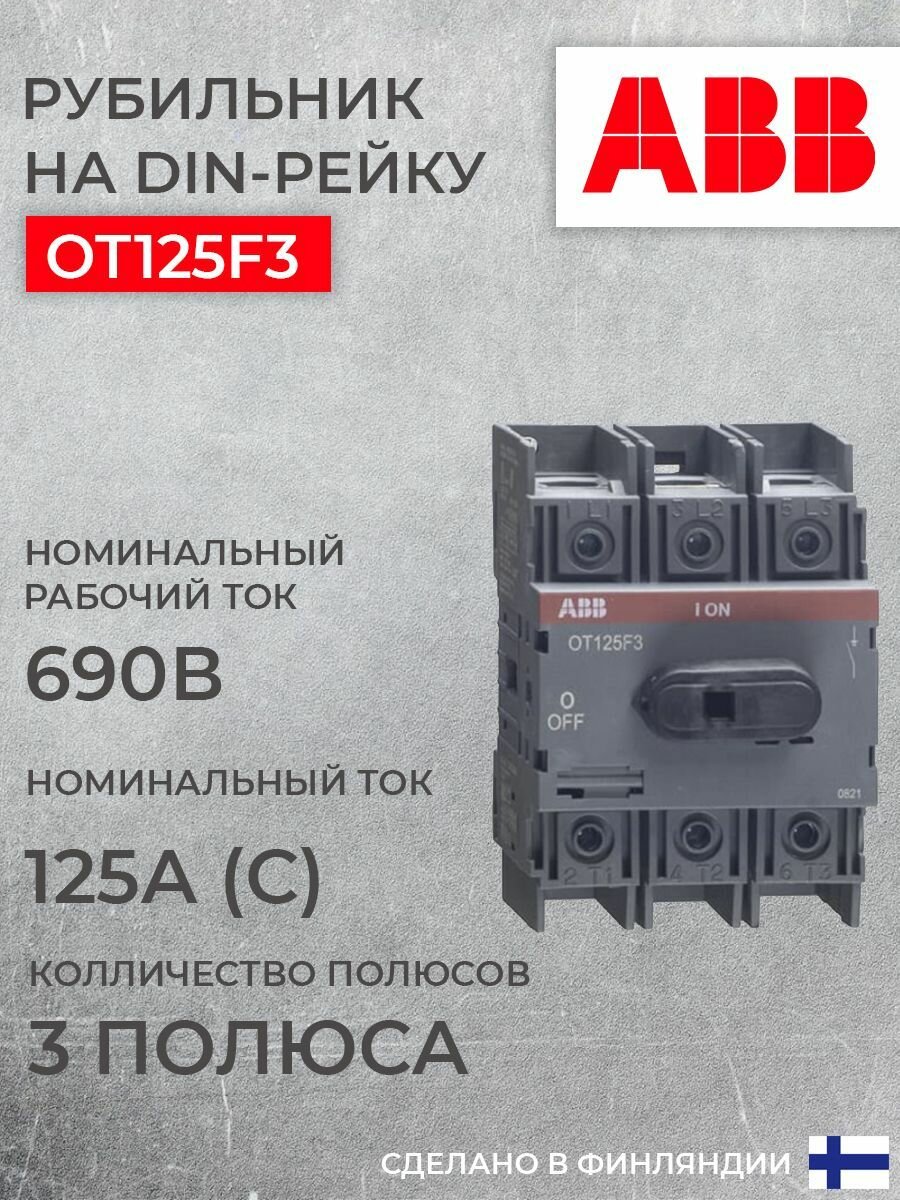 Рубильник ABB 3P OT125F3 125А на DIN-рейку (с ручкой) 1шт (арт. 1SCA105033R1001) информация: