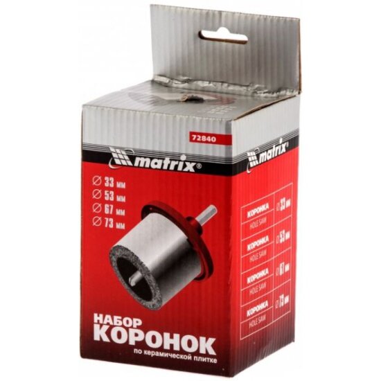 10 цен на Набор коронок MATRIX 72840, по керамической плитке, 33-53-67-73 мм, 6-гранный хвостовик