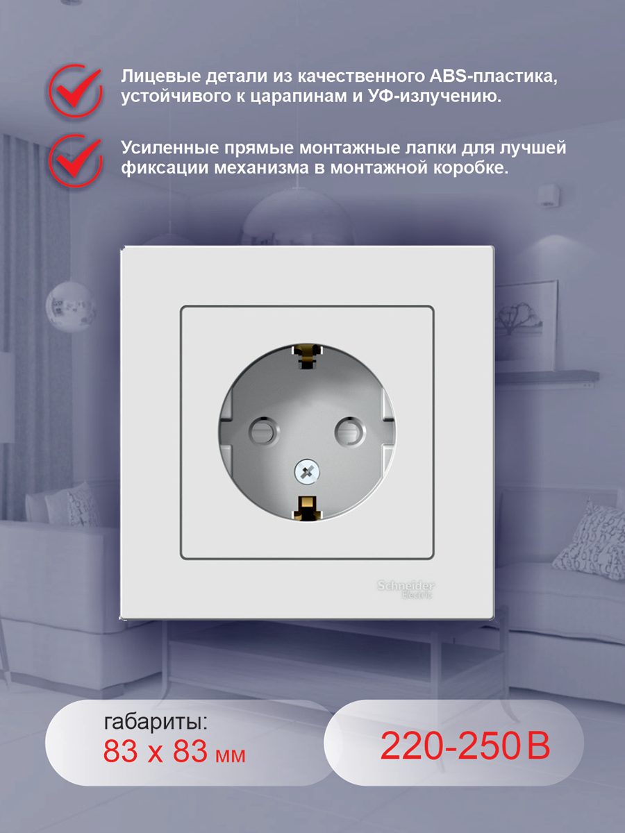 10 цен на Schneider Electric Schneider AtlasDesign роз. СУ 1 мест. бел. Antibacterial (пласт. осн., земля, шторки) ATN000144