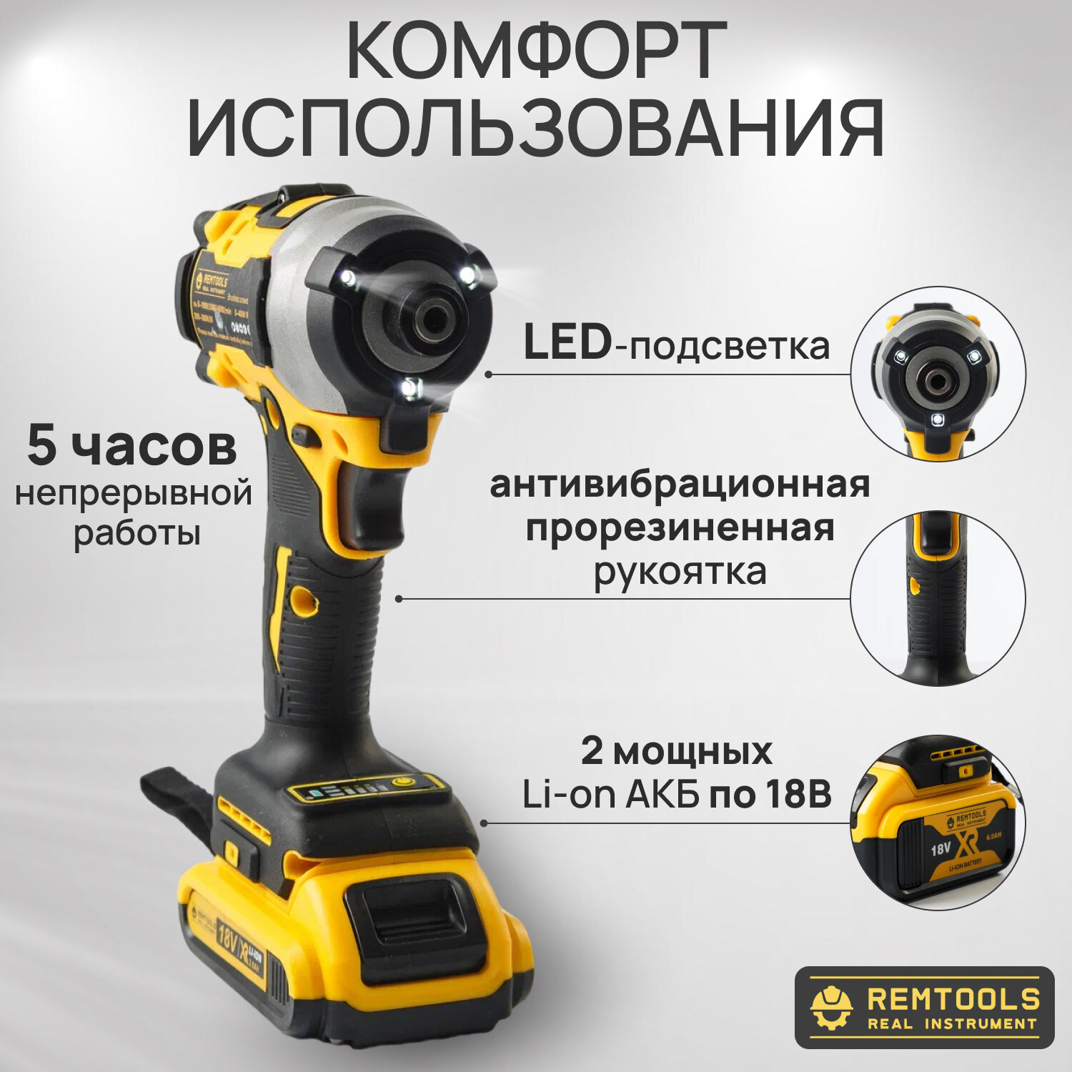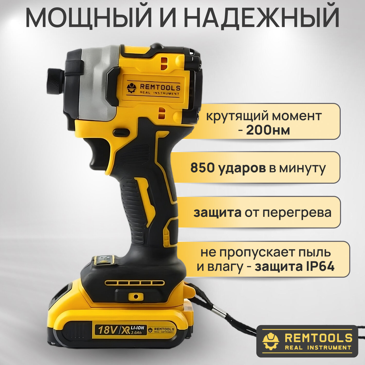Шуруповерт аккумуляторный, бесщеточный 18В, 200 Нм, 2 АКБ / Дрель шуруповерт / Импакт аккумуляторный информация: