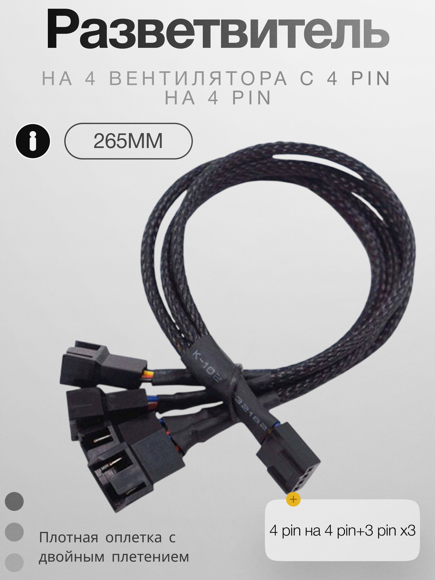 Разветвитель на 4 вентилятора, кулера, с 4 pin на 4 pin, удлинитель вентилятора информация: