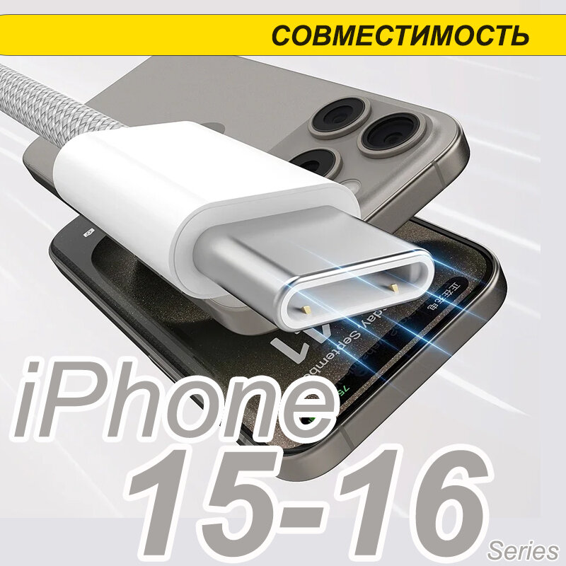 Кабель TypeC-TypeC для iPhone 15-16 Pro Max, Plus, iPad Pro, Android, 60 Вт 749 ₽