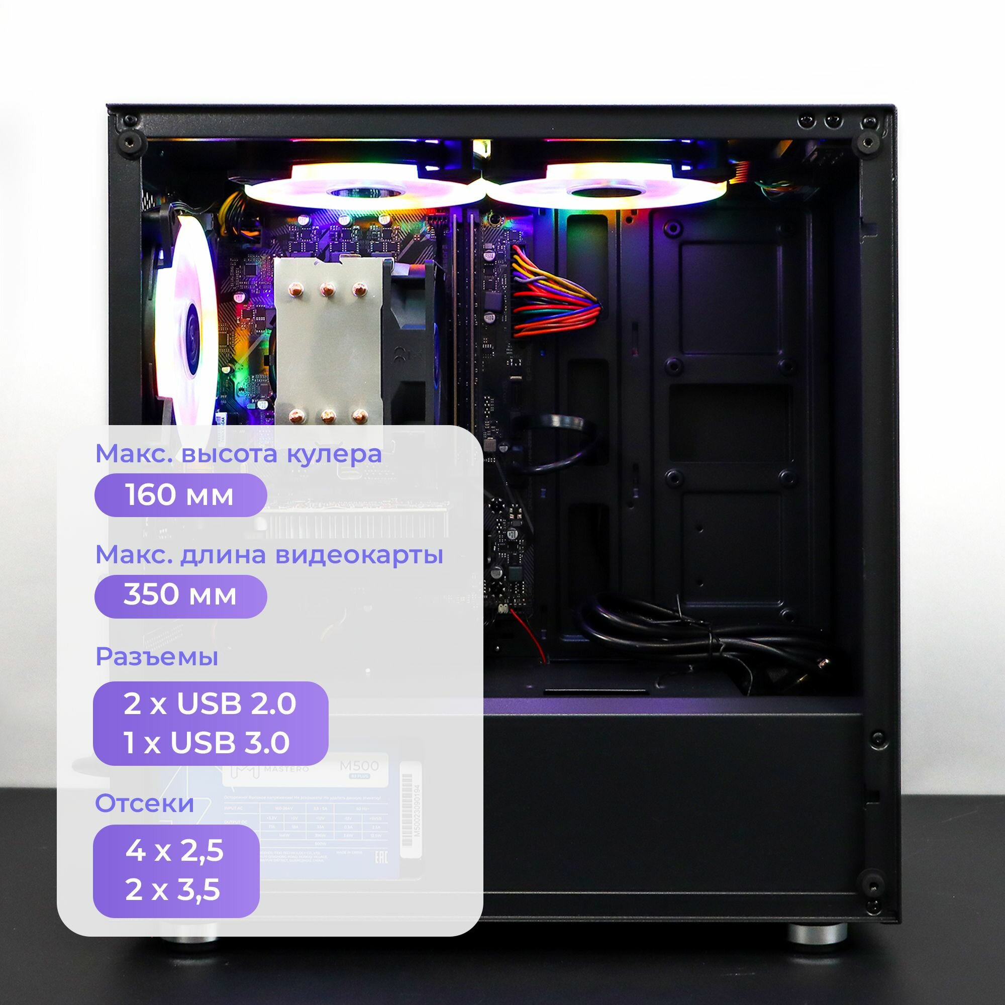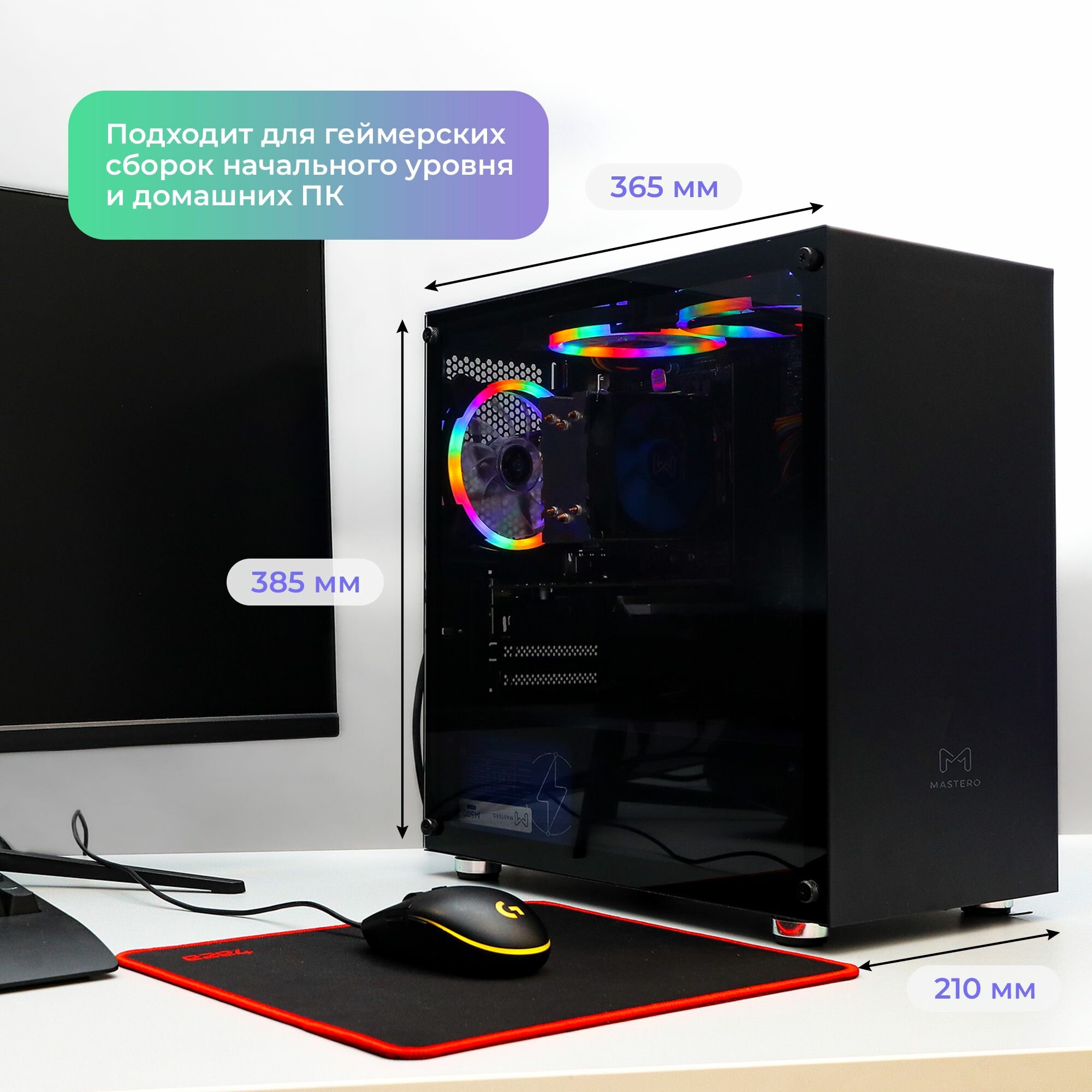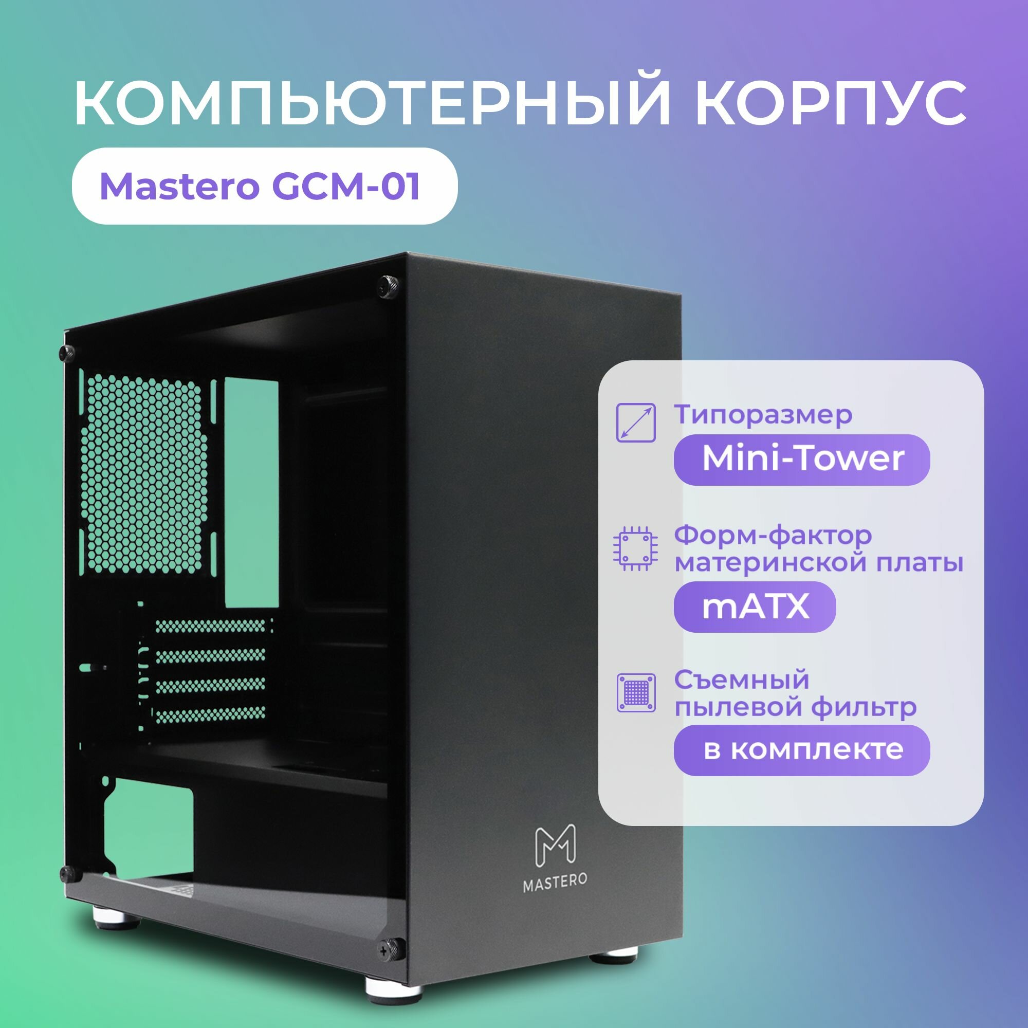 Корпус Mastero со стеклянной стенкой GCM-01 mATX, Mini-Tower, без БП черный (MST-GCM-01) информация: