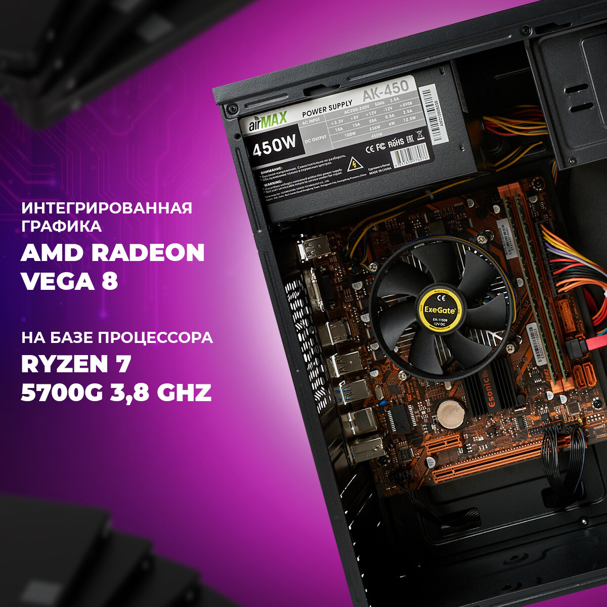 ОФисный компьютер TREIDCOMPUTERS Системный блок Ryzen 7 5700G 3,8 (8 ядер) / 16 Гб / SSD 480 gb / AMD Radeon Vega 8 информация: