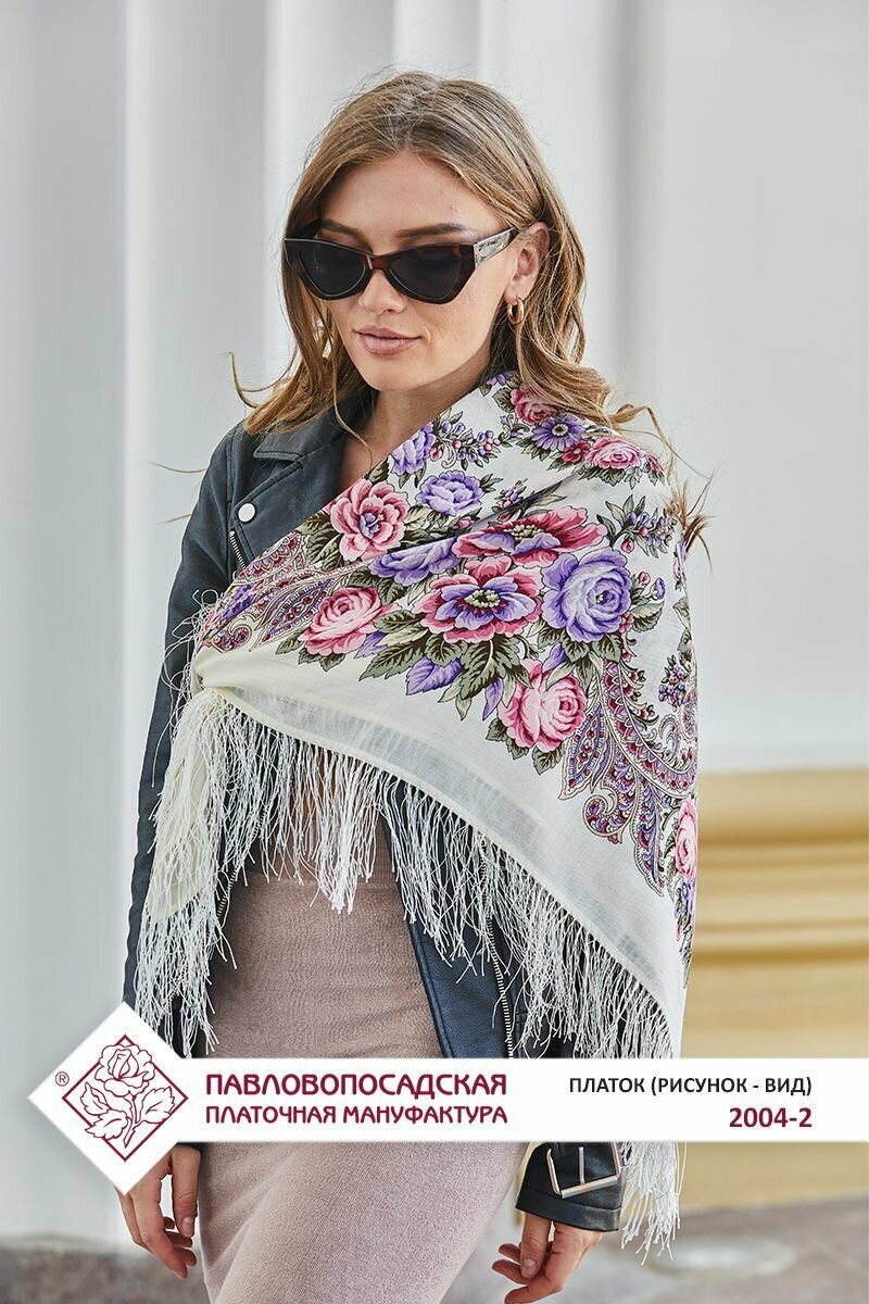 Платок шерстяной Павловопосадские платки "На солнечной поляночке" 2004, вид 1, белый, 89х89 см 2 797 ₽