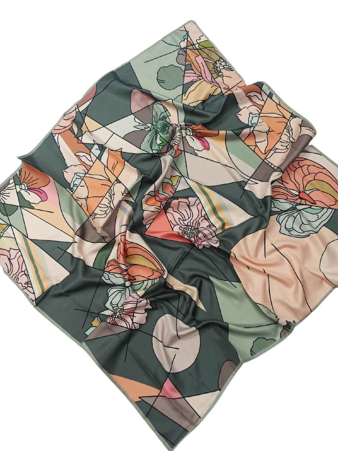 Платок на голову Toriolli зеленый 90 х 90 с подарочной упаковкой информация: