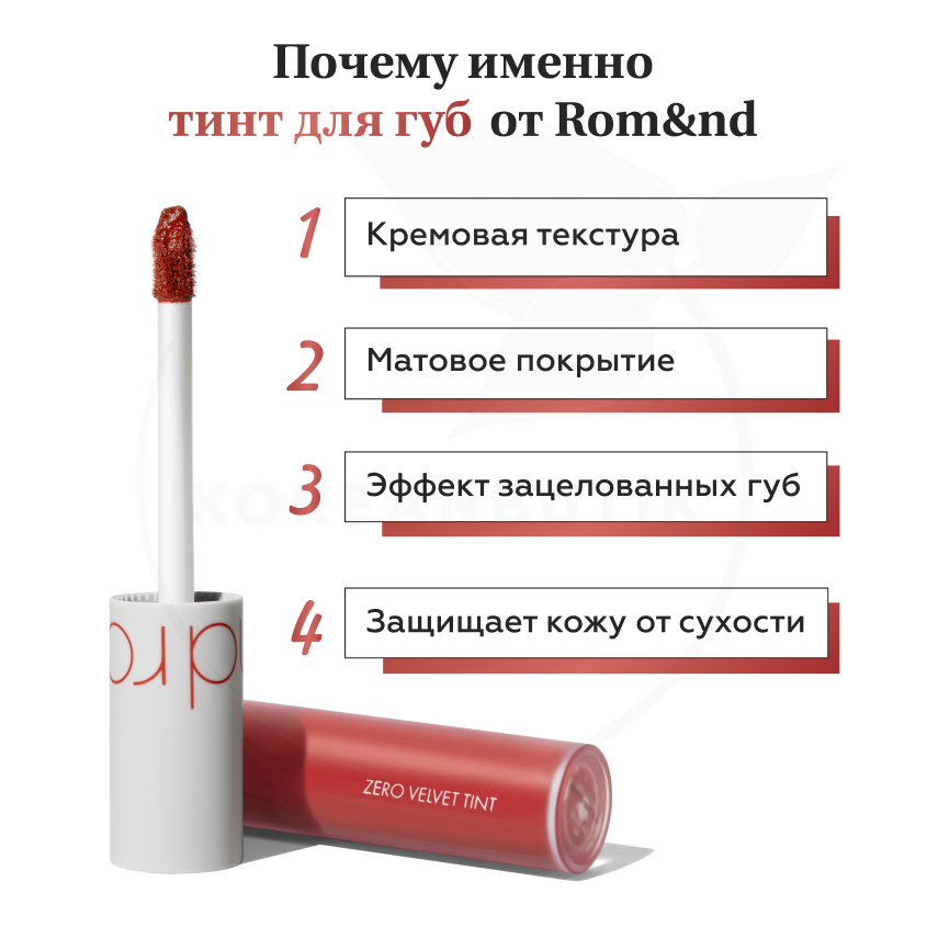 10 цен на Тинт бархатный для губ алый | ROM&ND Zero Velvet Tint 05 Witty