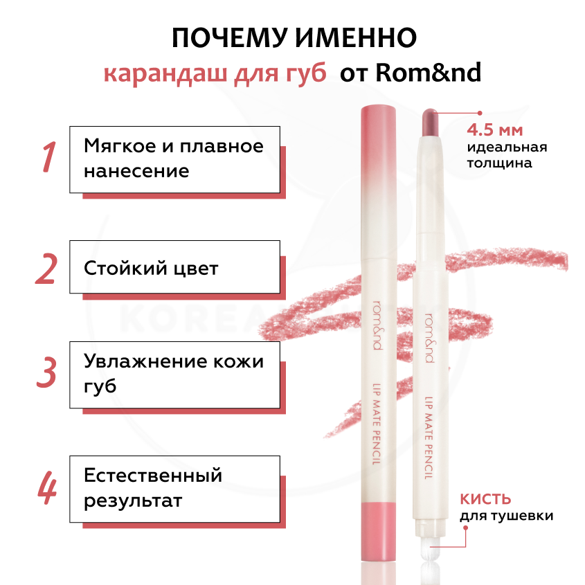 Карандаш для губ 04 розового цвета | ROM&ND Lip Mate Pencil 04 Fig Breeze информация: