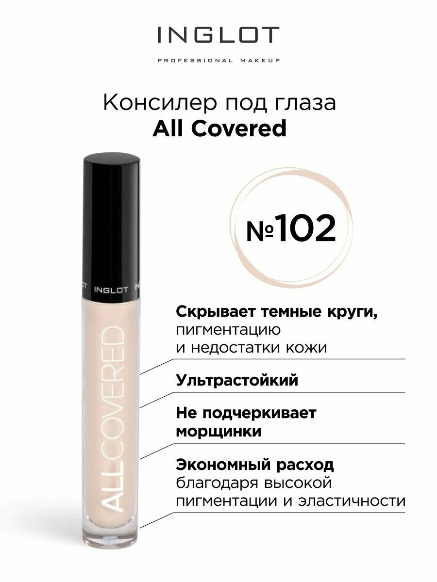 10 цен на Консилер INGLOT плотный с мягкой ухаживающей формулой под глаза и для лица ALL COVERED CONCEALER N102