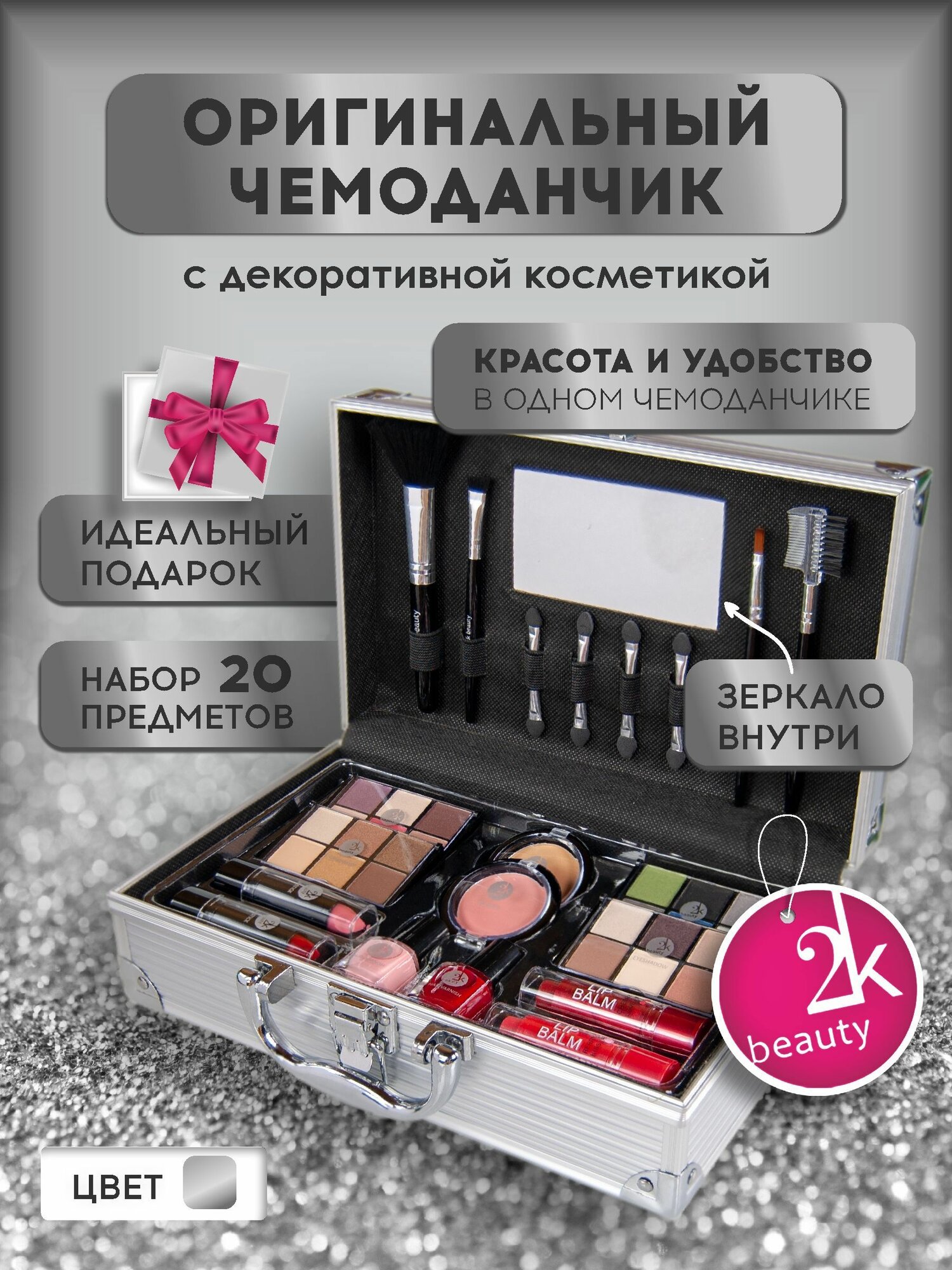 10 цен на Подарочный набор декоративной косметики для макияжа 2K Beauty в органайзере чемодане / палетки теней для век, румяна, помада, лак для ногтей / бьюти бокс №6 (Barcelona)