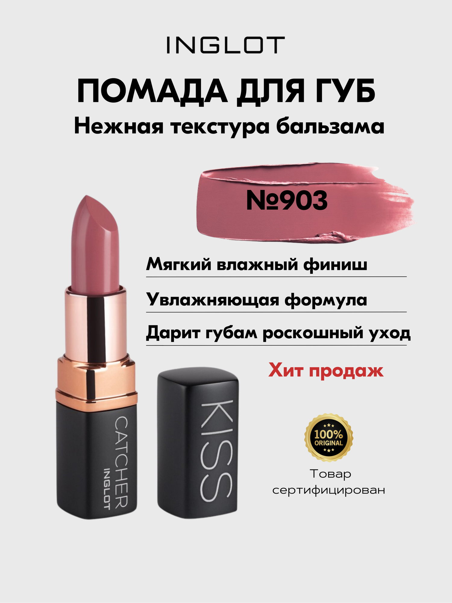 Увлажняющая помада для губ INGLOT Kiss Catcher оттенок № 903, матовый финиш информация: