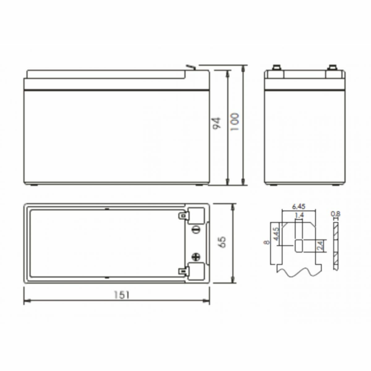 Аккумулятор для ибп 6v 7.5 Ah NPP AGM F1/T1 акб эхолота, фонарей, весов 151x34x100 мм