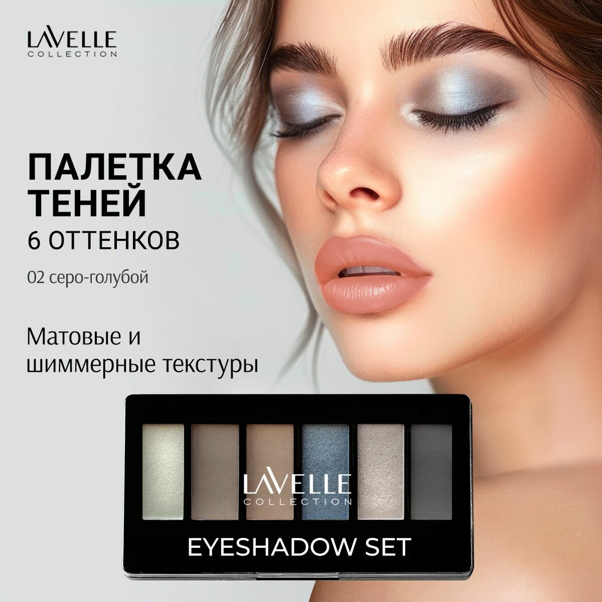 Отзывы на LavelleCollection Тени для век, палетка теней для глаз, матовые и блестящие, тон 02 серо-голубой