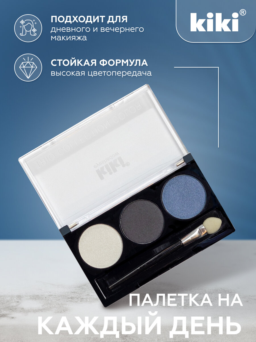 10 цен на Тени для век kiki Trio Collection Color тон 106 стойкая палетка 3 цвета с аппликатором для растушевки белый черный синий