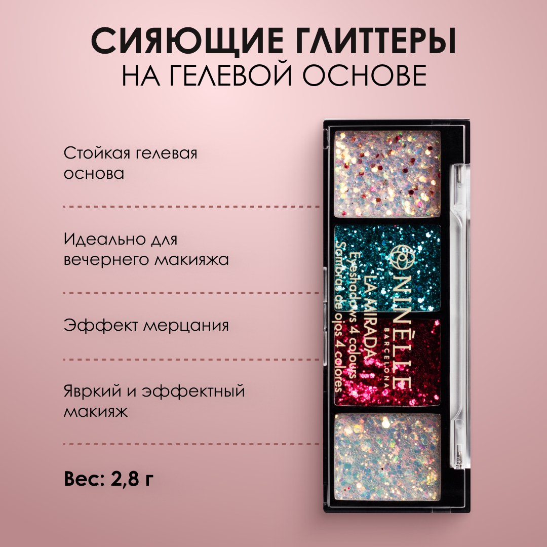Отзывы на NINELLE Тени для век 4 оттенка LA MIRADA №508, сияющий глиттер