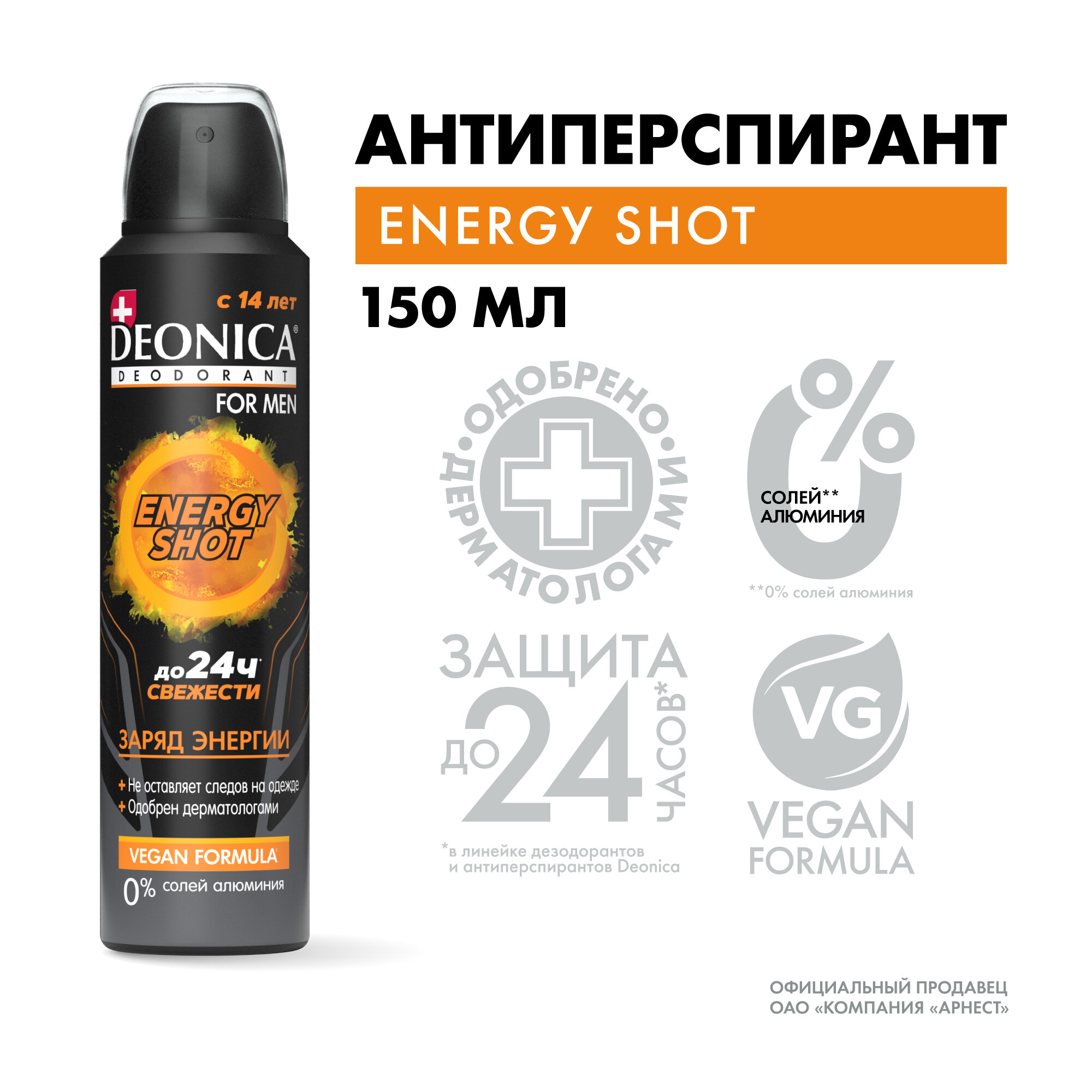10 цен на Deonica Дезодорант спрей мужской Vegan Formula Energy Shot, 150 мл