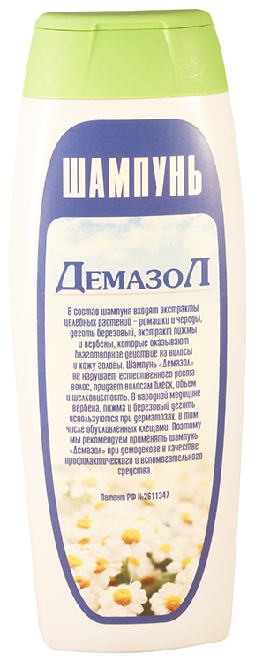 | Способ применения | нанесите небольшое количество Шампуня «Демазол » на вымытые волосы, вспеньте его и распределите по коже головы, лица и ушей. Легкими массирующими движениями втирайте пену в кожу головы в течение 4-5 минут. Ополосните волосы теплой водой. Просушите волосы полотенцем (фен не рекомендуется), оставив их слегка увлажненными для лучшего эффекта |