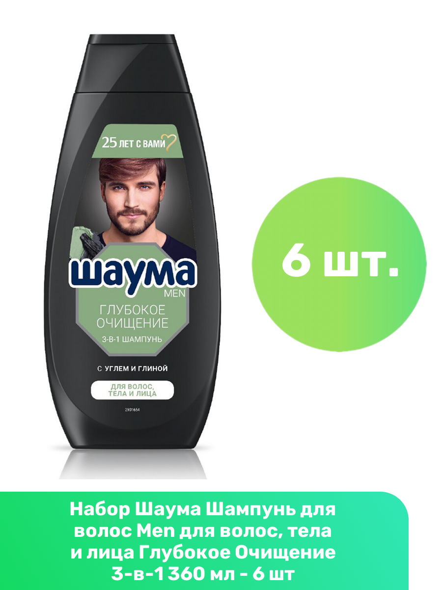 Шаума Шампунь для волос Men для волос, тела и лица Глубокое Очищение 3-в-1 360 мл - 6 шт информация: