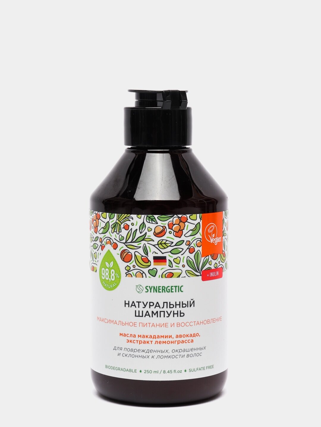 10 цен на Шампунь для окрашенных волос SYNERGETIC «Максимальное питание и восстановление» натуральный, бессульфатный, 250мл
