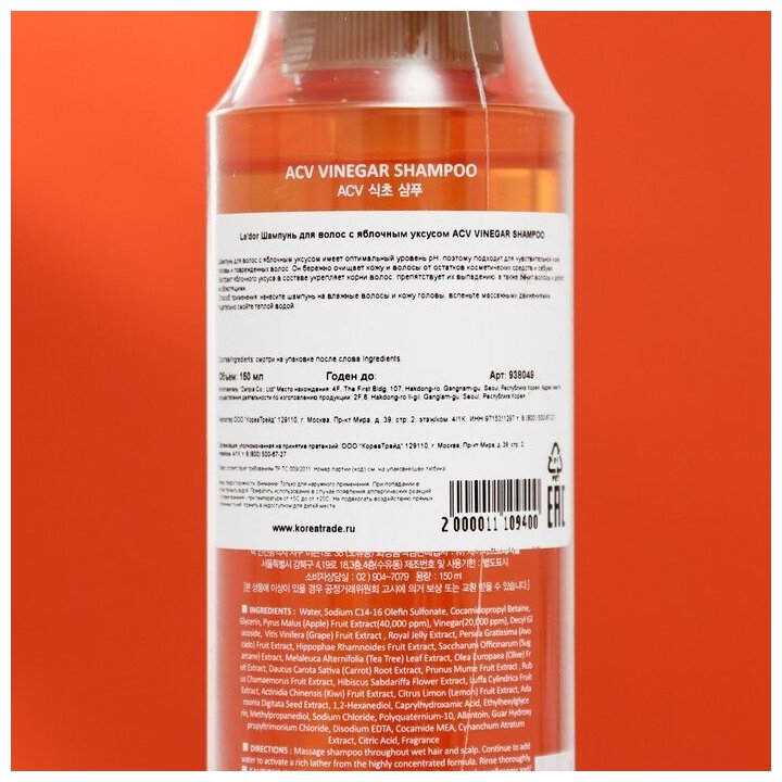 La'dor Шампунь с яблочным уксусом ACV Vinegar Shampoo, 150 мл информация: