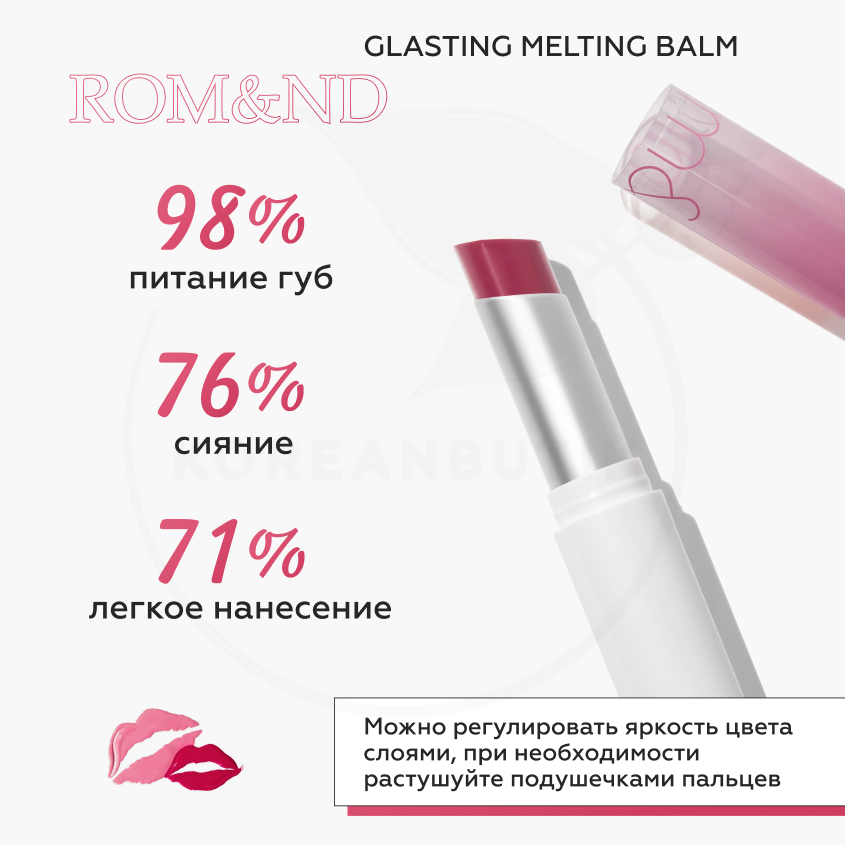 Бальзам для губ оттеночный розовый | ROM&ND Glasting Melting Balm 02 Lovey Pink 3.5г 1 427 ₽