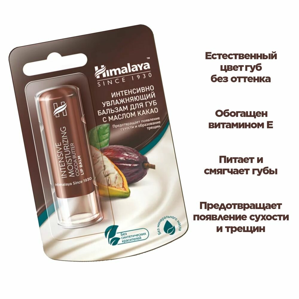 Himalaya Бальзам для губ интенсивно увлажняющий с маслом какао 4.5 г (2 шт.) информация: