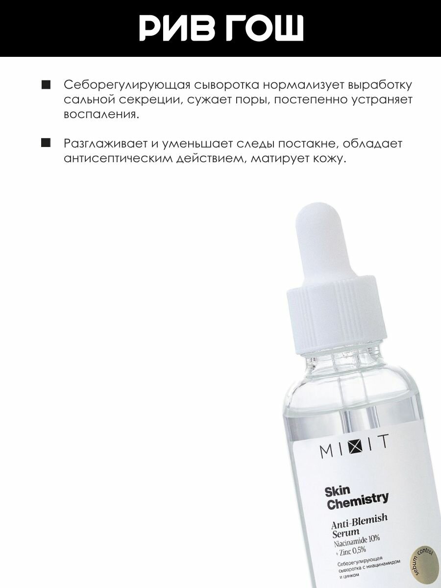 MIXIT Сыворотка для лица Skin Chemistry себорегулирующая с нициамидом и цинком для проблемной кожи, 30 мл информация: