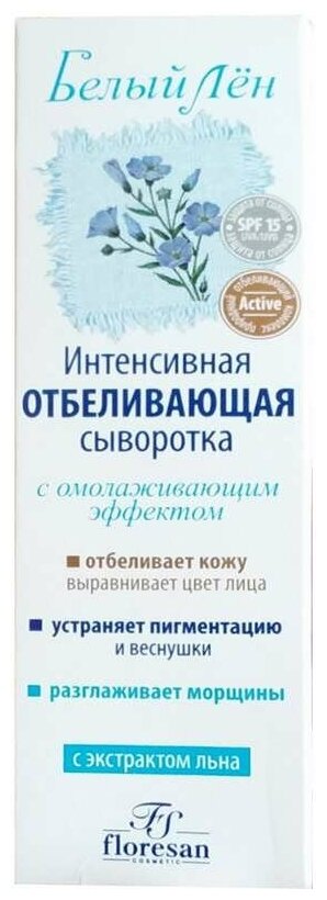Floresan Белый лен Интенсивная отбеливающая сыворотка с омолаживающим действием SPF 15, 65 мл