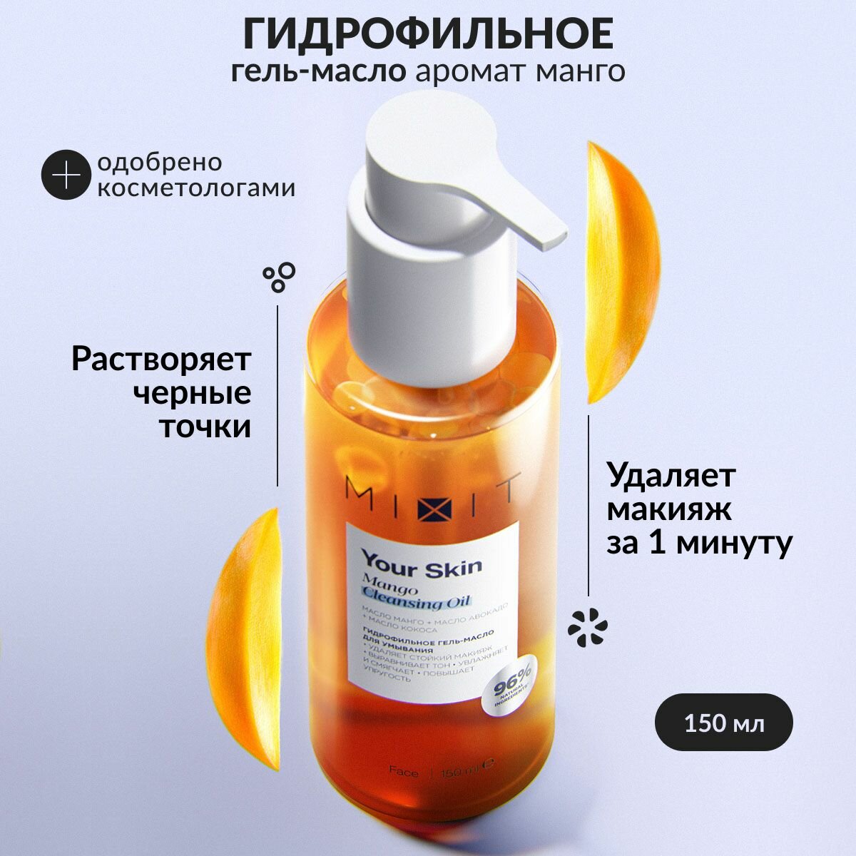 MIXIT Гидрофильное масло для умывания лица с натуральными экстрактами YOUR SKIN, очищающее средство для смывания макияжа, от шелушения, 150 мл