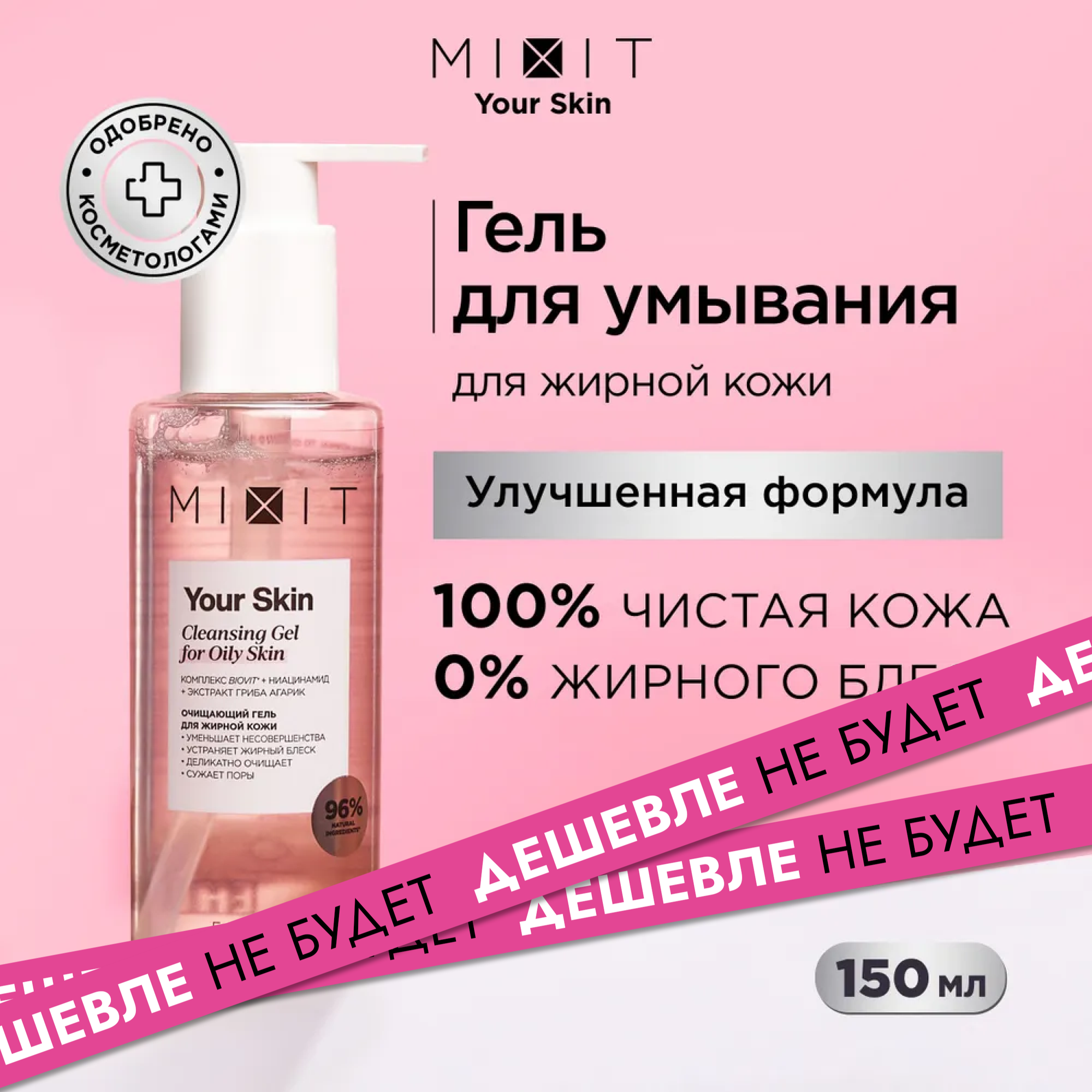 Отзывы на MIXIT Очищающий гель для умывания лица матирующий постакне YOUR SKIN, 150 мл