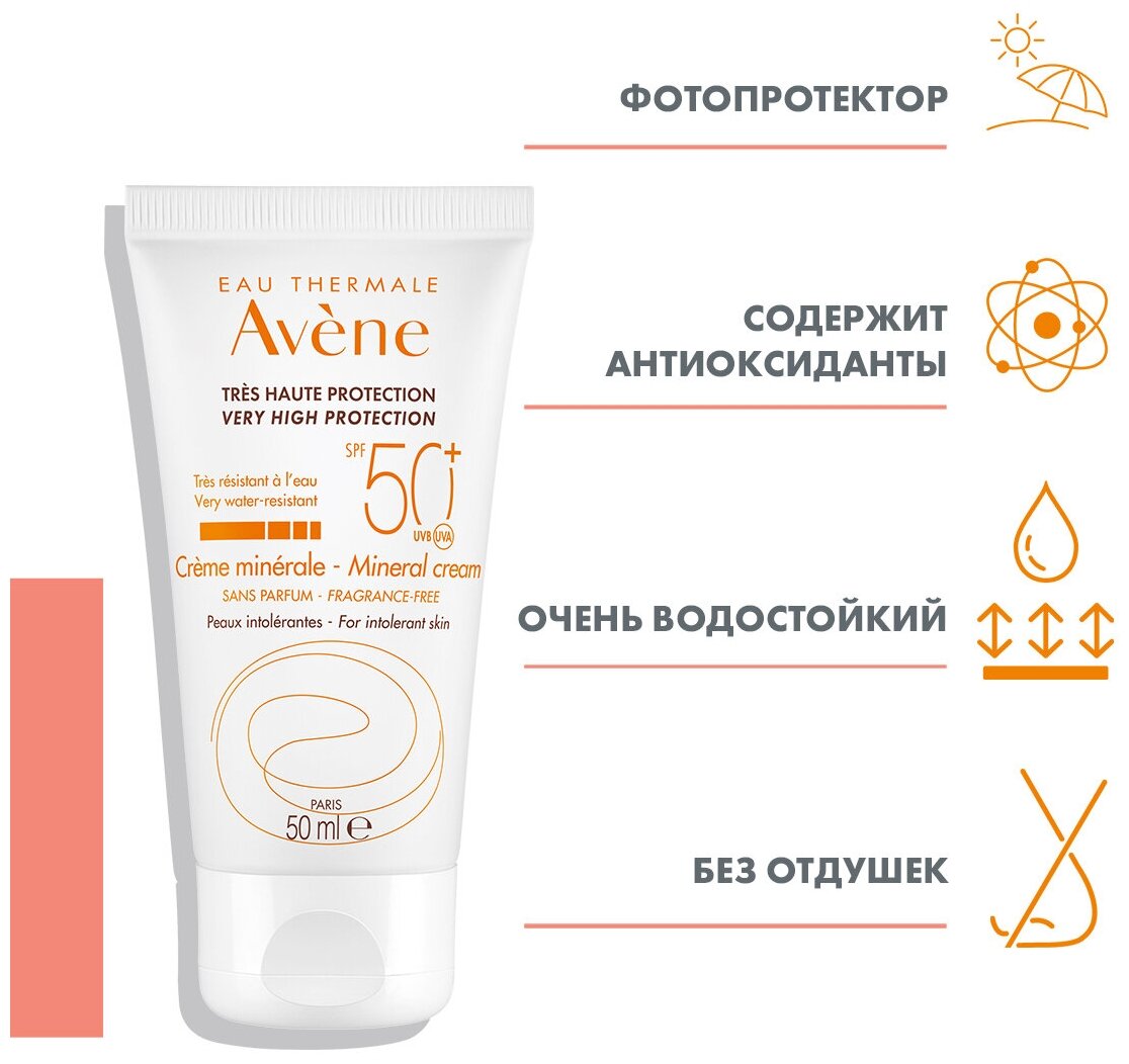 Крем солнцезащитный для сверхчувствительной кожи минеральный SPF50+ Avene/Авен туба 50мл (C35577) информация:
