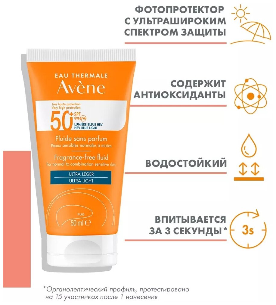 10 цен на Avene солнцезащитный флюид без отдушек SPF50+, 50 мл
