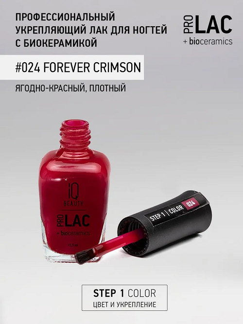 IQ Beauty №024 Forever crimson - Айкью Бьюти Лак для ногтей профессиональный укрепляющий с биокерамикой №024 (ягодно-красный), 12,5 мл - информация: