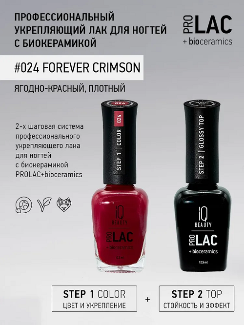10 цен на IQ Beauty №024 Forever crimson - Айкью Бьюти Лак для ногтей профессиональный укрепляющий с биокерамикой №024 (ягодно-красный), 12,5 мл -