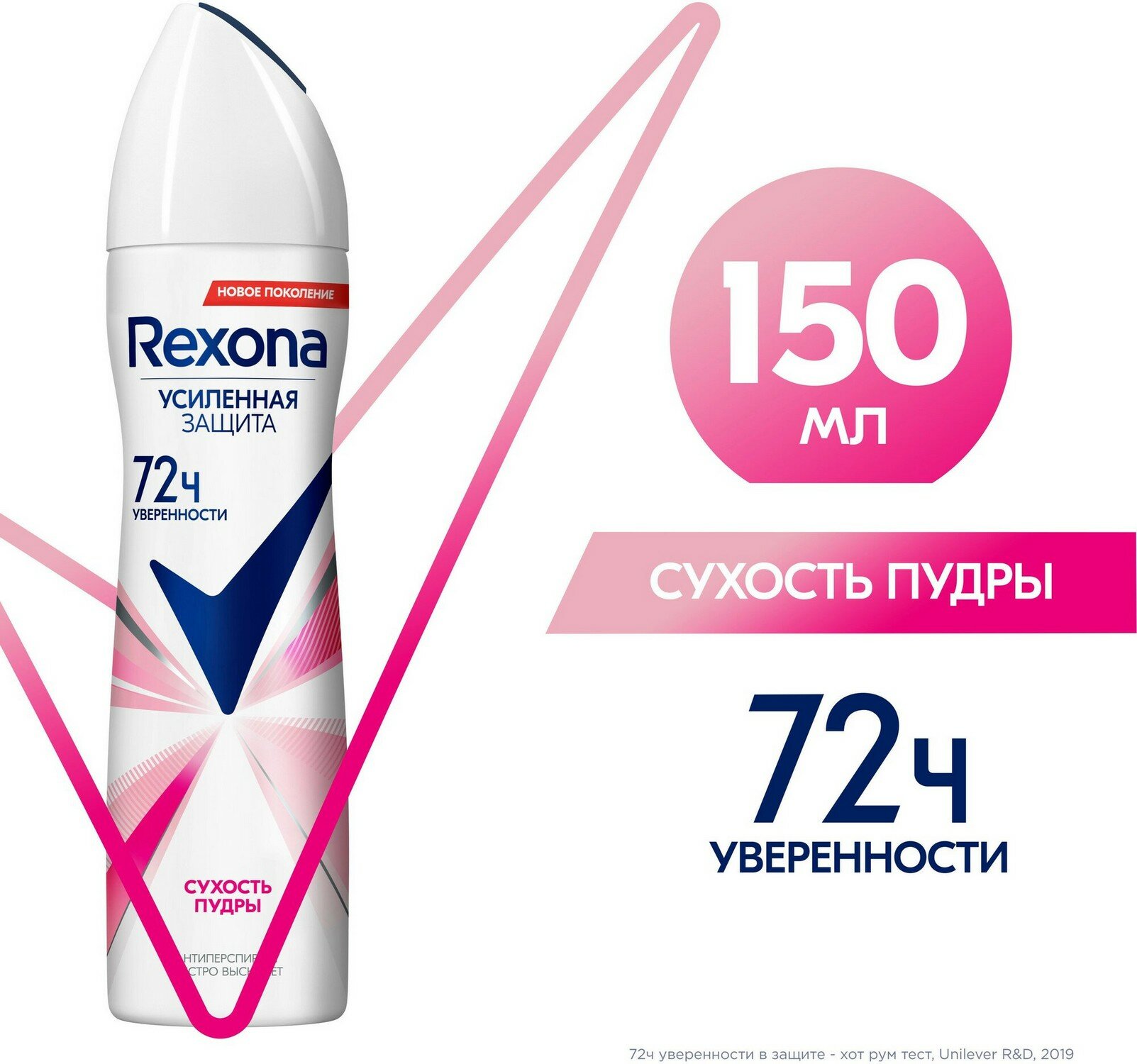 Rexona Дезодорант-антиперспирант аэрозоль Сухость пудры, спрей 72 часа 150 мл - 6 шт 1 714 ₽