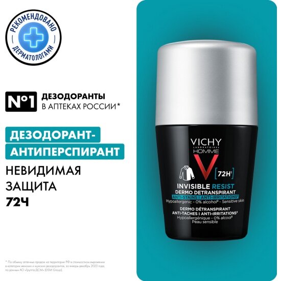 Отзывы на Дезодорант-антиперспирант шариковый Vichy Invisible против пятен 72 часа, 50 мл