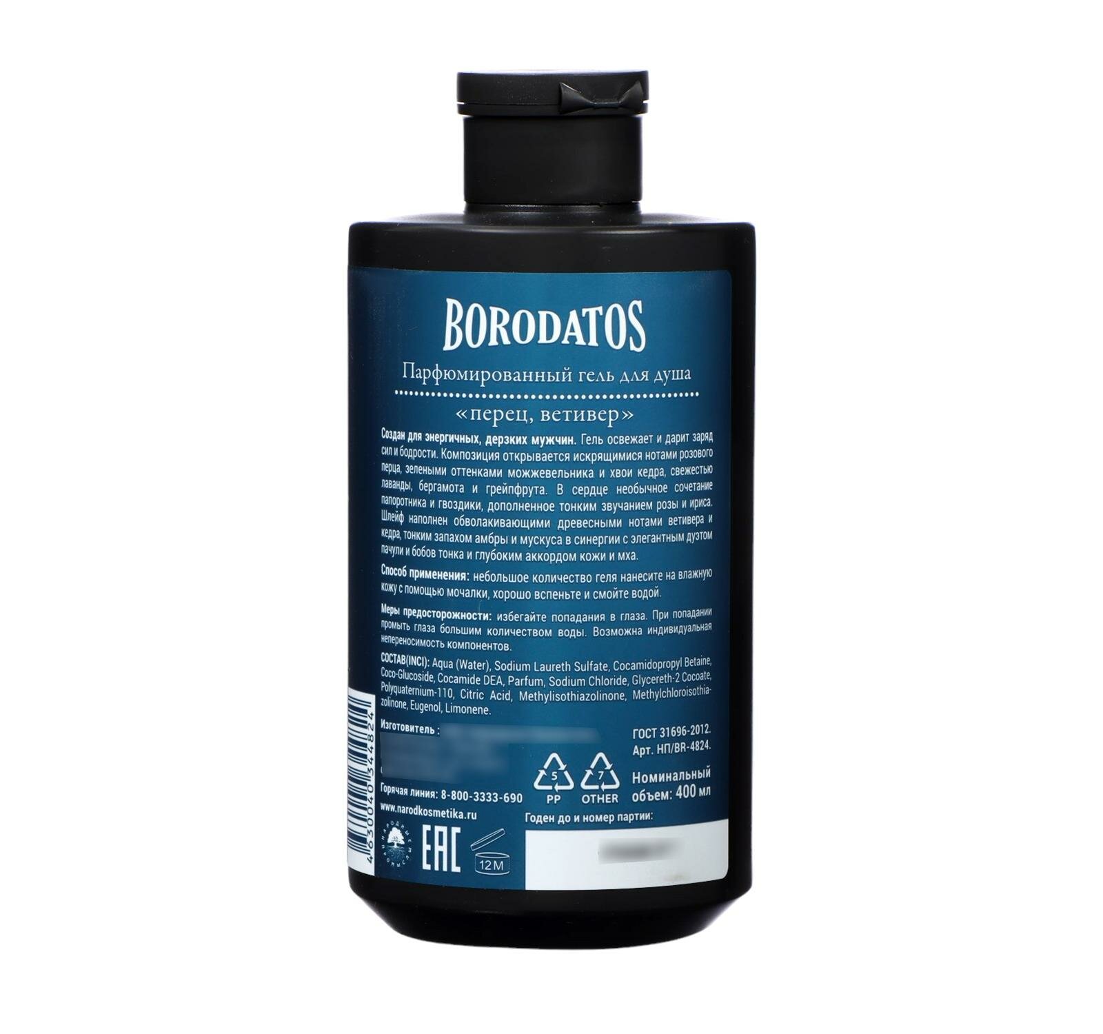 Borodatos Парфюмированный гель для душа "перец, ветивер", 400 мл информация: