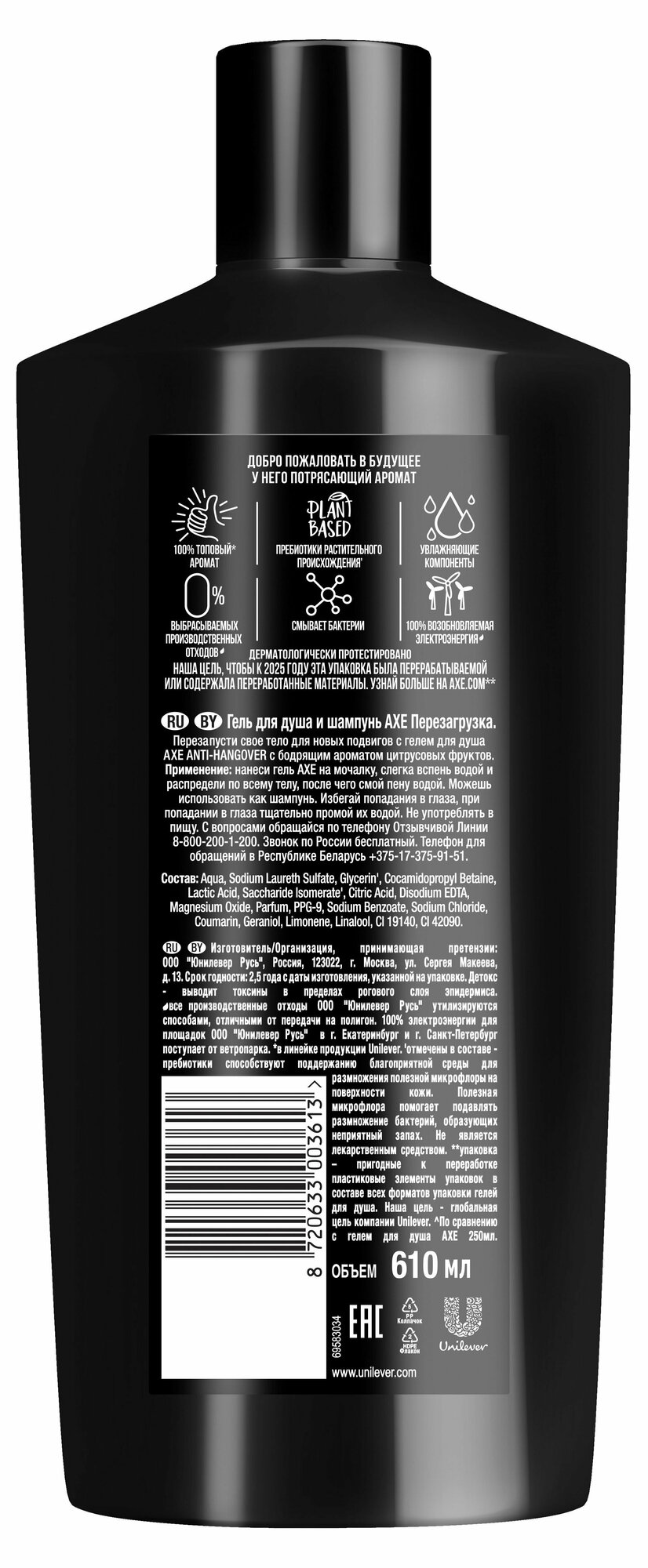 Axe гель для душа и шампунь мужcкой 2в1 Перезагрузка 610 мл информация: