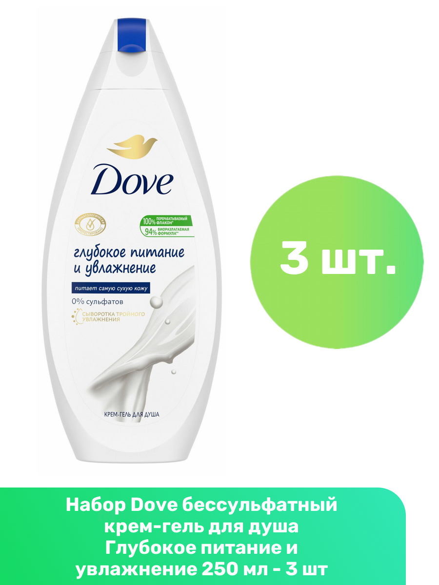 Dove бессульфатный крем-гель для душа Глубокое питание и увлажнение 250 мл - 3 шт информация: