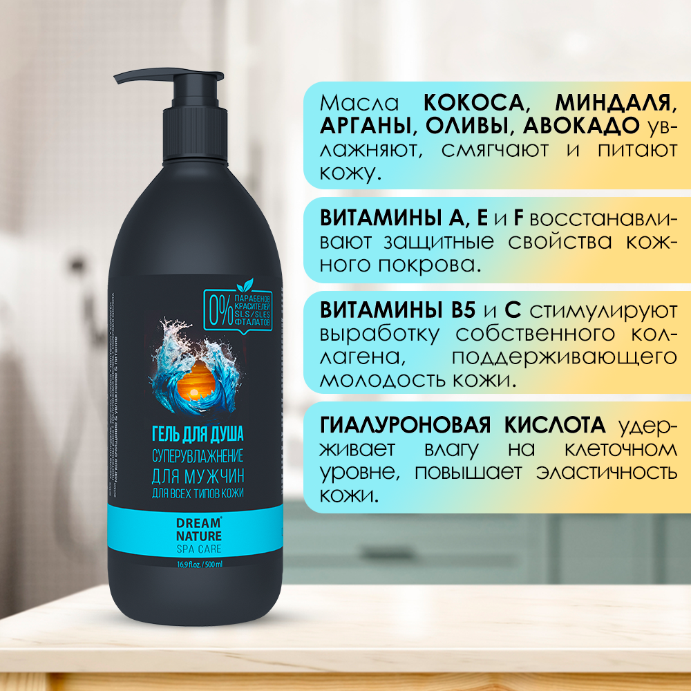 Гель для душа "Суперувлажнение" мужской Dream Nature SPA&Care, 500 мл информация: