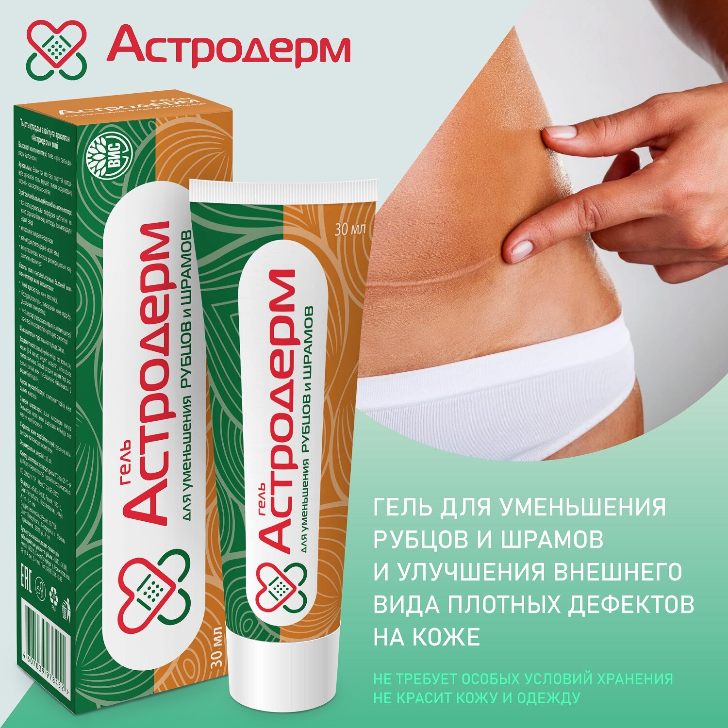 Астродерм гель для уменьшения рубцов и шрамов 30 мл 1 шт информация: