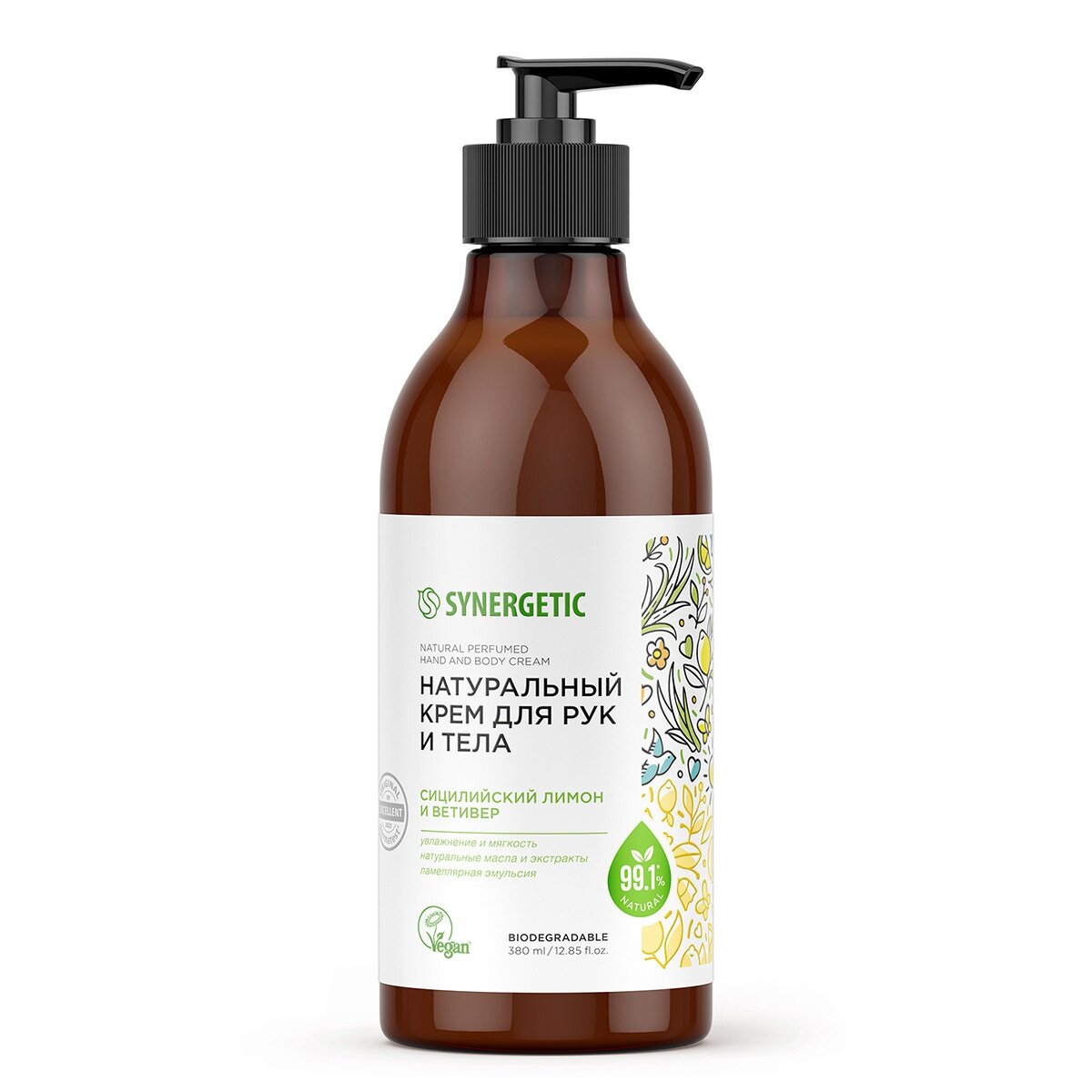 Крем для рук и тела synergetic сицилийский лимон и ветивер 380 мл 313 ₽