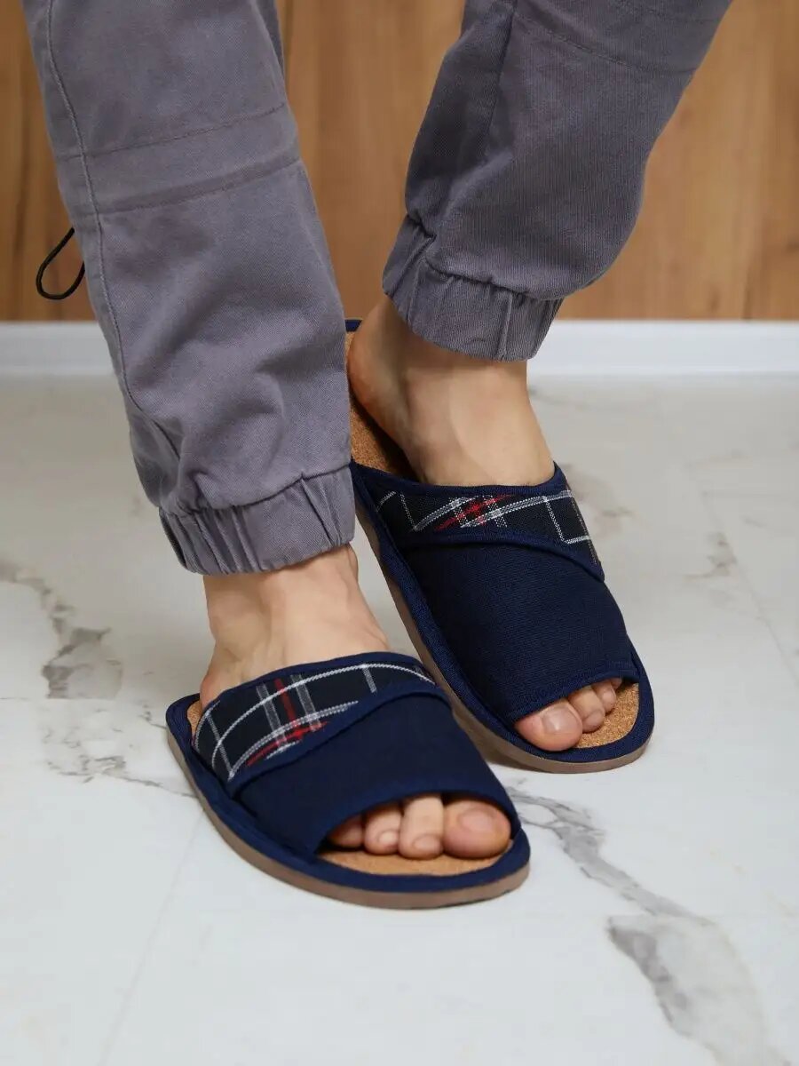 Отзывы на Мужские домашние тапки "LepiloV", открытые, на пробковой стельке с отворотом. Размер 40. Синяя клетка.